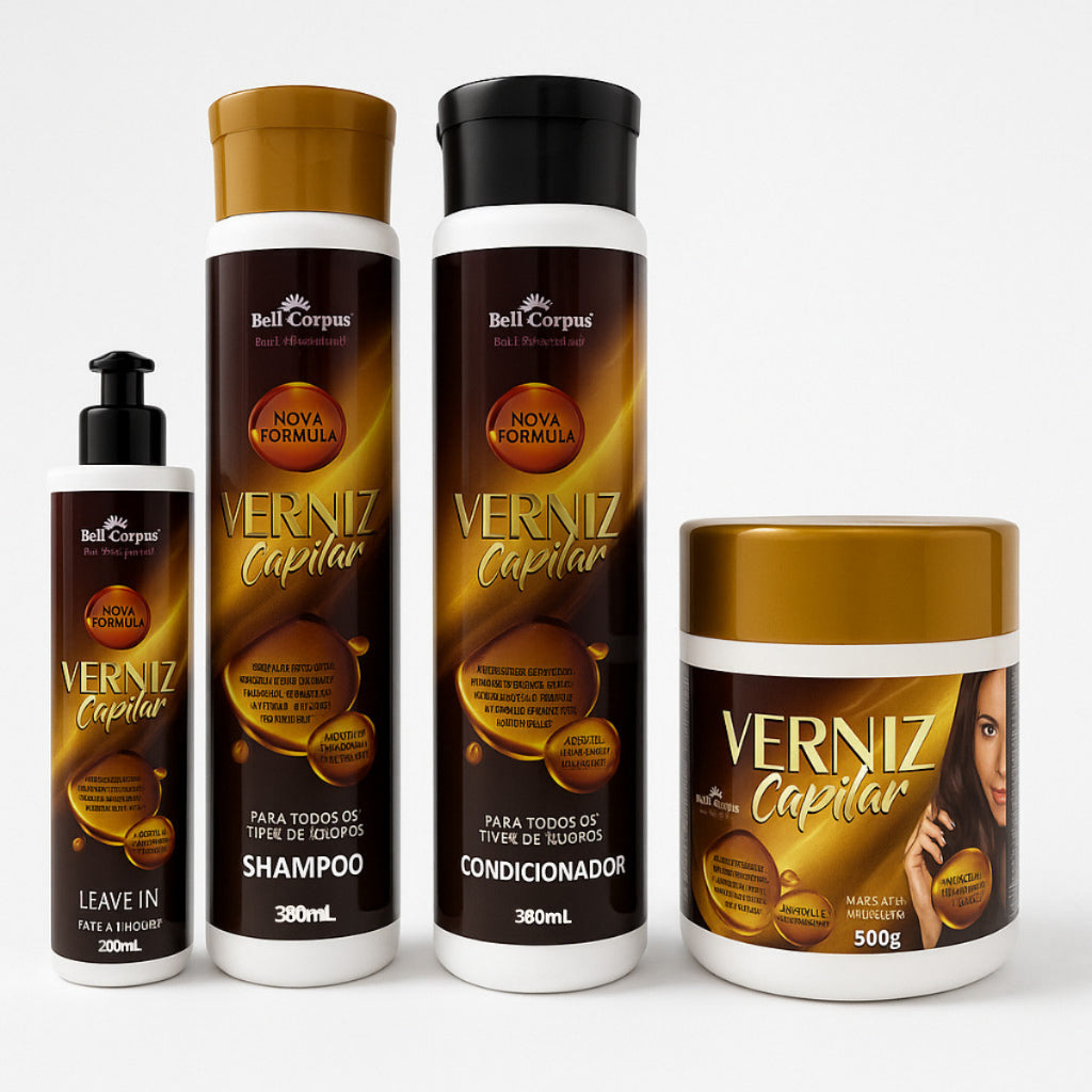 KIT BANHO DE VERNIZ BELL CORPUS (4 ITENS) – BRILHO INTENSO, HIDRATAÇÃO E RECONSTRUÇÃO